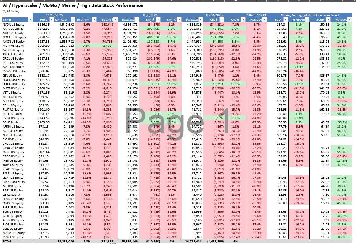 Benny & The Squirrel review the ongoing implosion in bubble stocks related to AI/LLM, High Beta, Momentum, and Memes. We discuss the growing fear of AI/LLM capex spend as we see CRWV & ORCL credit default swaps spreads widen. In other news, Bitcoin pierced $100k to the downside only increasing worries about the ongoing deleveraging in markets.